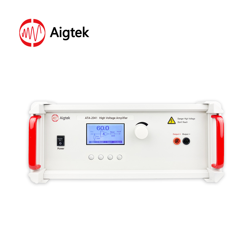 The ATA-2041 is an ideal single channel high voltage amplifier that can amplify both AC and DC signals. The maximum output voltage of 400 Vp-p (±200 Vp); the output peak current of 100 mA, equivalent to a conventional signal generator, realizes perfect signal amplification.