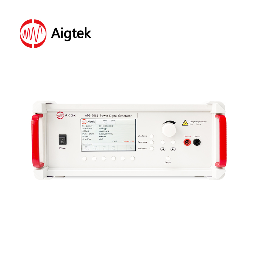 ATG-2081 is an ideal single channel power signal generator which can output sine, square, triangle and pulse wave. The customer can choose built-in or external signal input according to the application conditions. Maximum output voltage: 800 Vp-p (±400 Vp); drives high voltage loads. Digital control and variable voltage gain, one button to save general setting, convenient and concise operation.