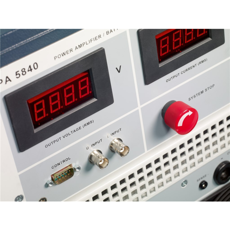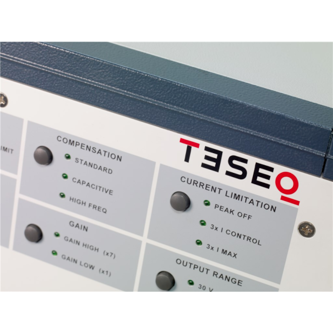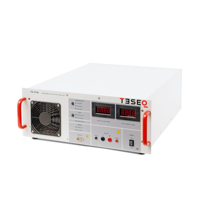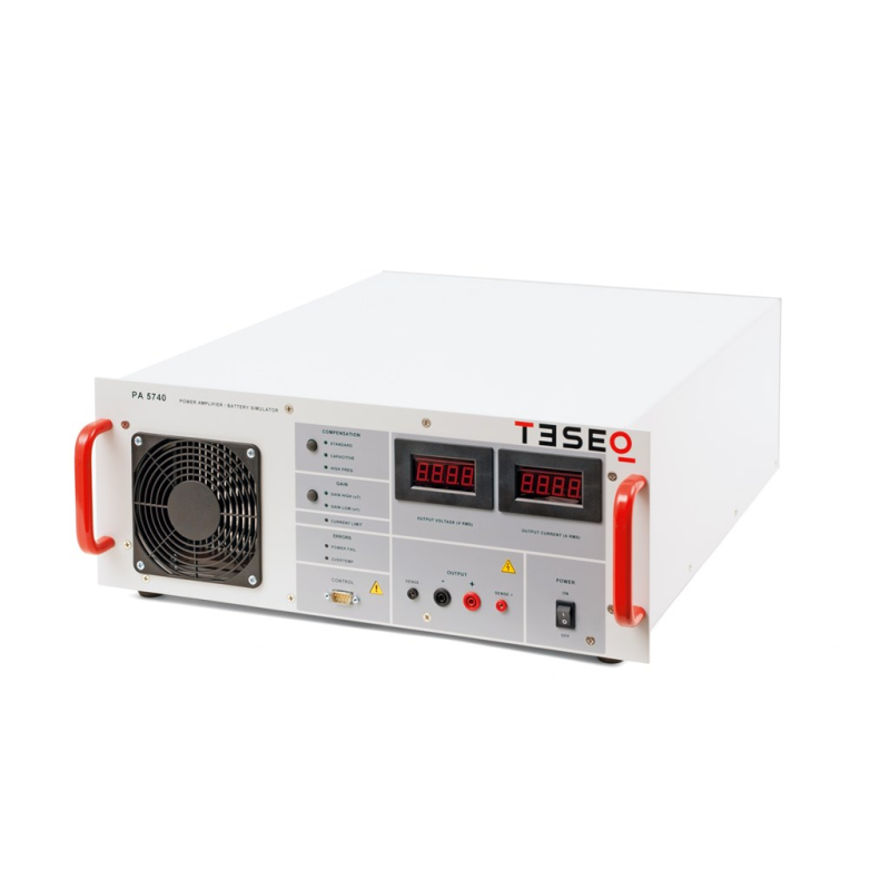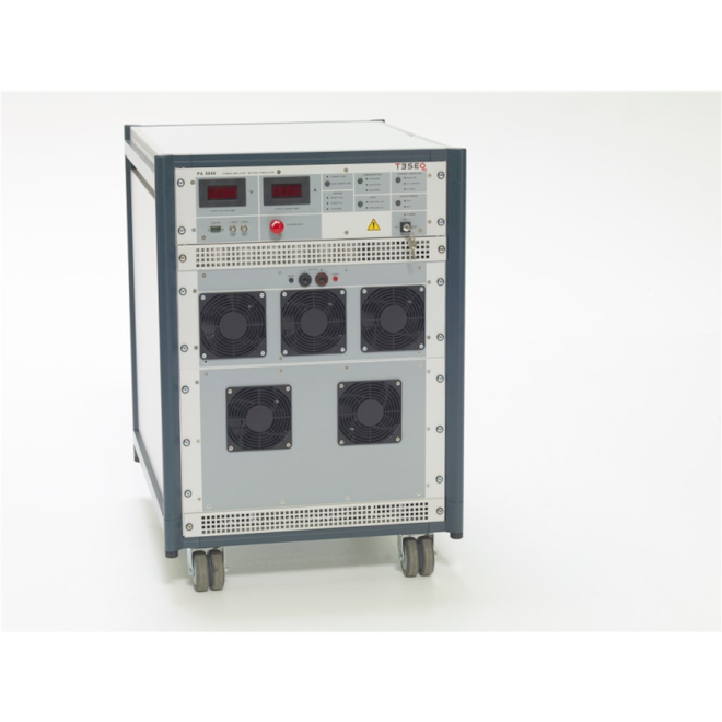 This battery simulator is designed to replace the vehicle battery in a test environment. These power supplies must meet various criteria regarding power rating, voltage, slew rate, impedance, etc. depending on the specific application. In several cases, bipolar current sources are specified. Bandwidth is three times greater than other amplifiers and inrush currents far exceed other comparable solutions, pulse 2b, pulse 4, sine noise and other complex simulations are the domain of the PA 5840 series. Of course, the amplifier is also perfectly suited for simulated transient testing in accordance with ISO 7637. The PA 5840 series offers feature combinations not found in any other battery simulator, making it the right product for your EMC needs. Designed specifically for automotive EMC testing, the Teseq 42V ready amplifier sets the pace for automotive battery simulation, including features essential for automotive immunity testing such as sensing leads to compensate for voltage drop across the cable and multiple operating modes to ensure stability under complex automotive loads. The control unit, power stage and power supply are separate functional units mounted in the rack, allowing for easy replacement and upgrades.