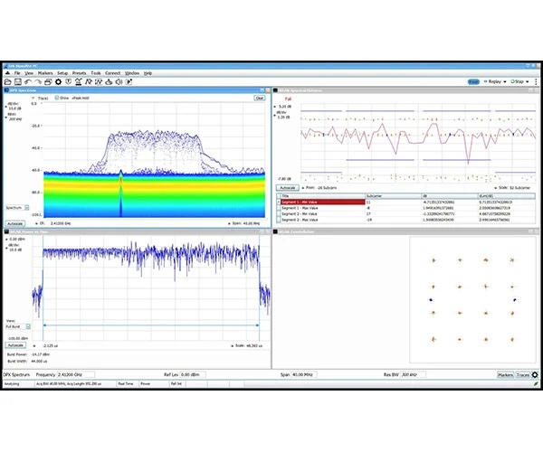 SignalVu is primarily intended as an AI for Tektronix Real-Time Spectrum Analyzers. However, if you want to work with broadband RF signals, then you can also work with oscilloscopes and get real-time BW corresponding to the oscilloscope bandwidth. You get the functions of a vector signal analyzer, a pulse analyzer, a WiGig or WLAN tester, a spectrum analyzer, all with support for the triggering functions of a digital oscilloscope.
